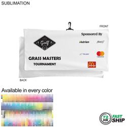 Oversized Golf Towel in Microfiber Dri-Lite Terry, 22x44, with Black Swivel Hook, Sublimated 1 side. Protect your clubs on a rain day with this oversize golf towels which will cover your bag and clubs. Usage: Golf tournaments, Sponsorship towel, Premium giveaway, Retail. Price includes full color sublimation print. Max Imprint: 22" x 44"L